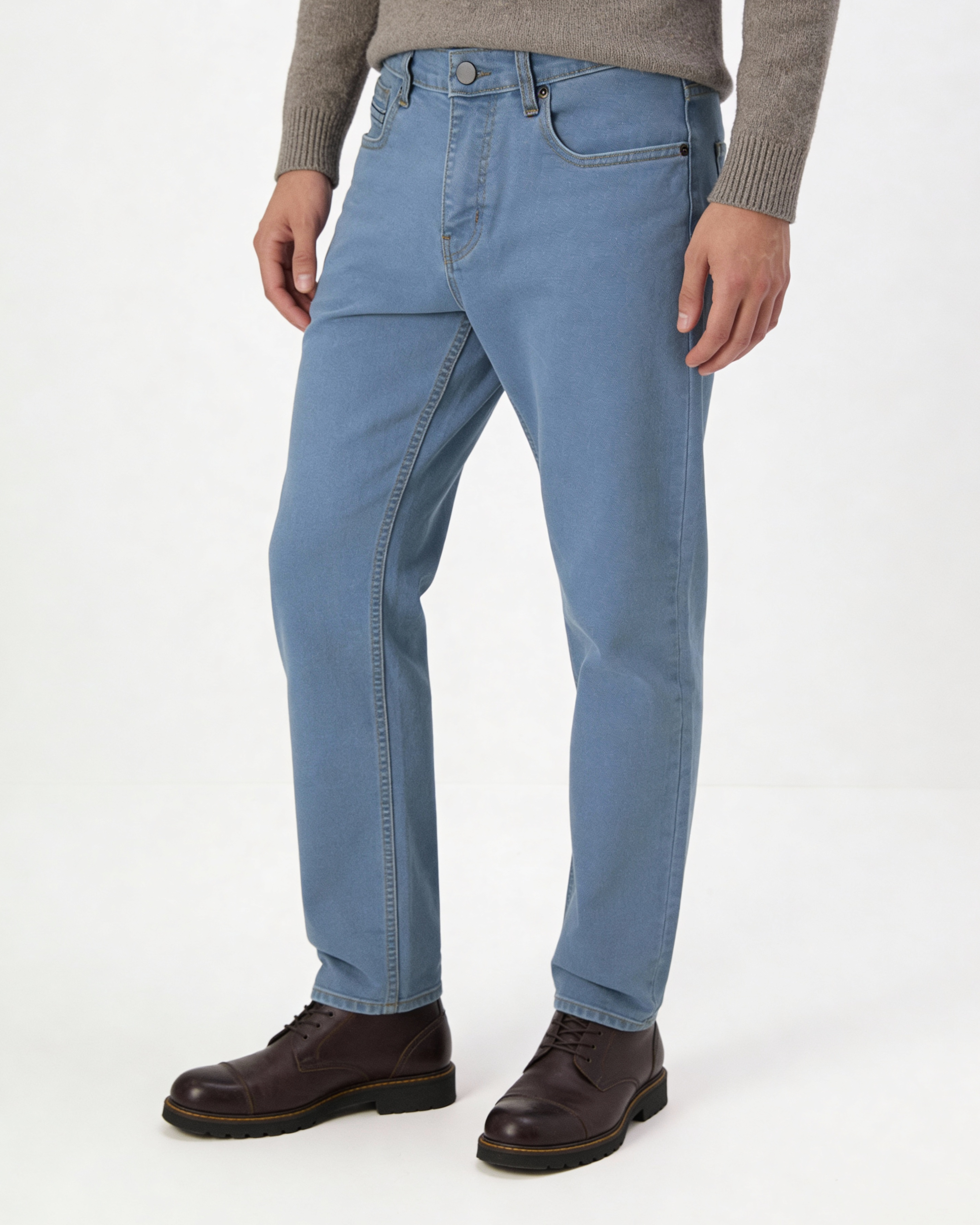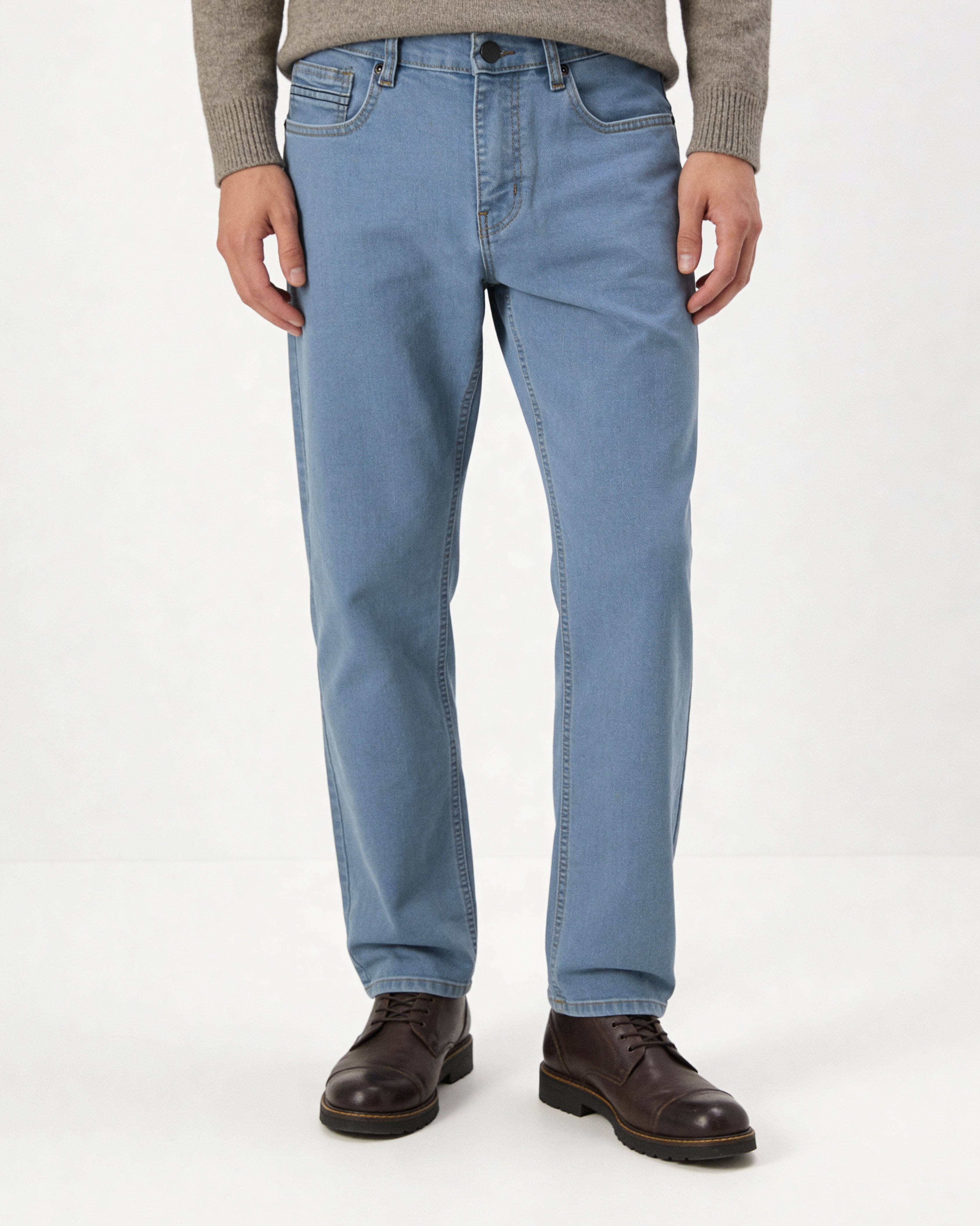 REGULAR FIT JEANS-PLAIN MEDIUM BLUE WASH